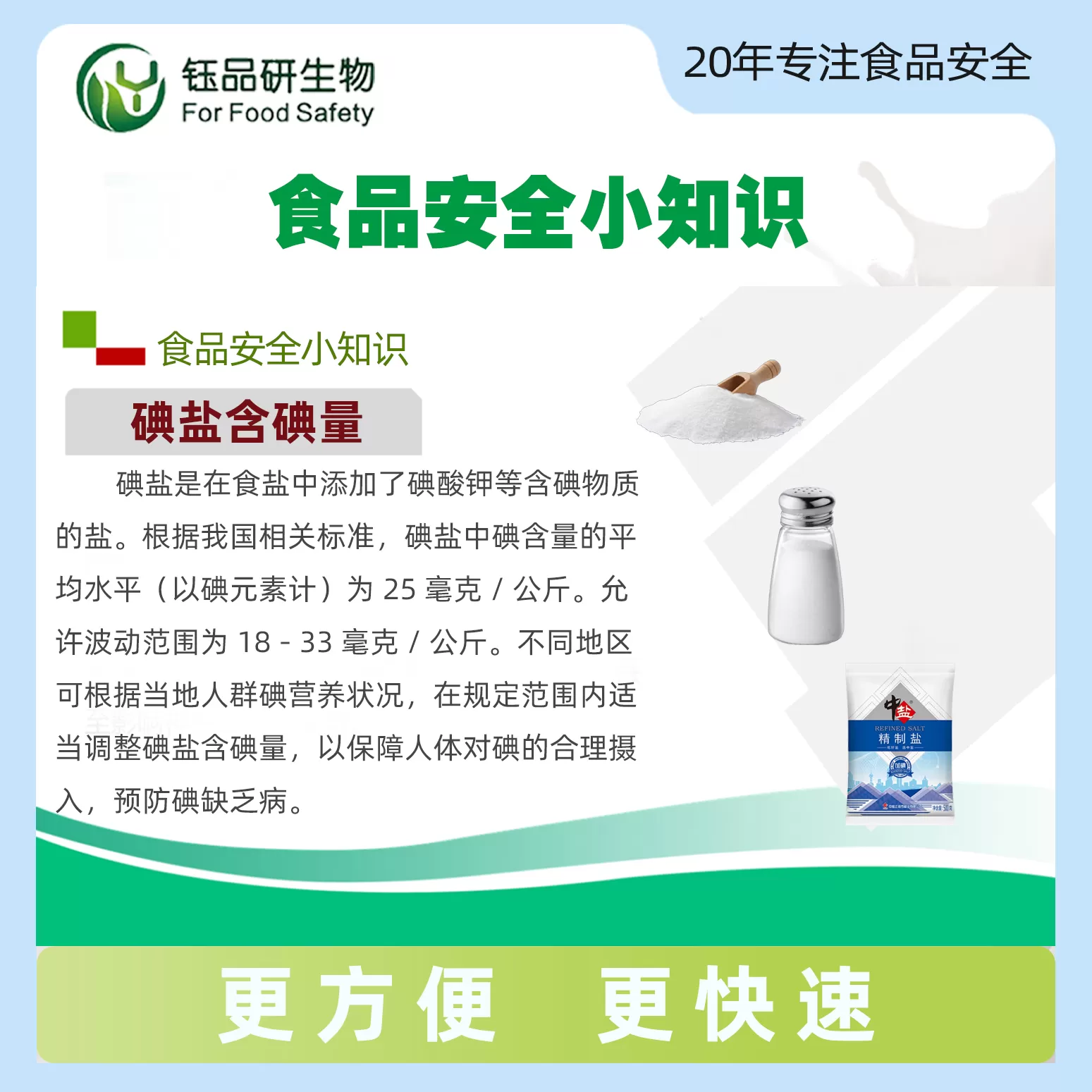 本试剂盒适用于经碘酸钾强化后的食盐中碘含量的快速检测。
