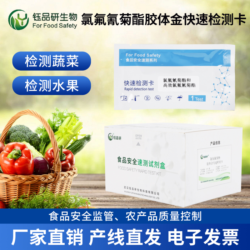 在高效检测需求日益增长的当下,武汉钰品研生物研发的食品安全快速检测试剂、试纸及胶体金检测卡等产品,为三氟氯氰菊酯残留检测提供了可靠工具。这些产品具备操作简便、检测速度快、结果可视化等特点,可广泛应用于农业种植基地自检、企业出厂筛查及监管部门现场抽检,帮助快速识别残留超标风险,从源头降低食品安全隐患。