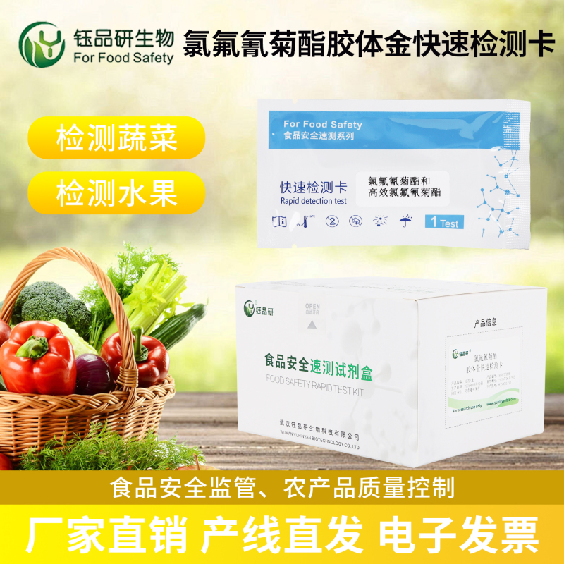 面对日益严格的国内外农残标准,精准、高效的检测工具成为企业和监管部门的必备保障。武汉钰品研生物专注于食品安全快速检测领域,自主研发的快速检测试剂、试纸及胶体金检测卡等产品,可在短时间内完成对农产品中氯氟氰菊酯残留的筛查,为农产品生产、加工、流通各环节提供可靠的检测支持,助力企业应对严格的农残标准要求,从源头守护消费者的“舌尖安全”。