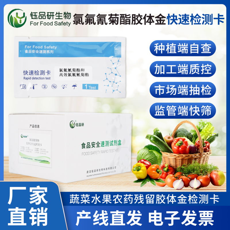 作为专注食品安全快速检测领域的技术企业,武汉钰品研生物始终致力于研发更精准、更便捷的检测产品。其生产的胶体金检测卡、检测试纸等产品,已广泛应用于茶叶、蔬菜、水果等农产品的农残筛查,为市场监管、生产企业及消费者构建食品安全防线。