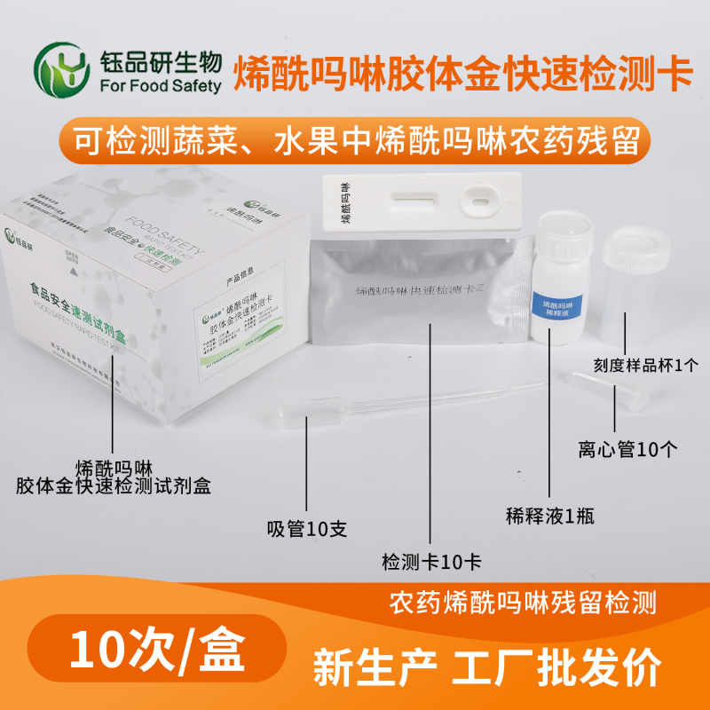 面对这一现状,武汉钰品研生物专注于食品安全快速检测领域,其研发生产的食品安全快速检测试剂、试纸、胶体金检测卡等产品,能够针对烯酰吗啉等常见农残成分提供快速、精准的检测方案。这些检测产品操作简便,无需复杂设备,无论是种植户、农产品收购商还是市场监管部门,都能在短时间内完成检测,及时掌握草莓等农产品的安全状况,从而提前规避潜在风险,确保消费者吃得放心。