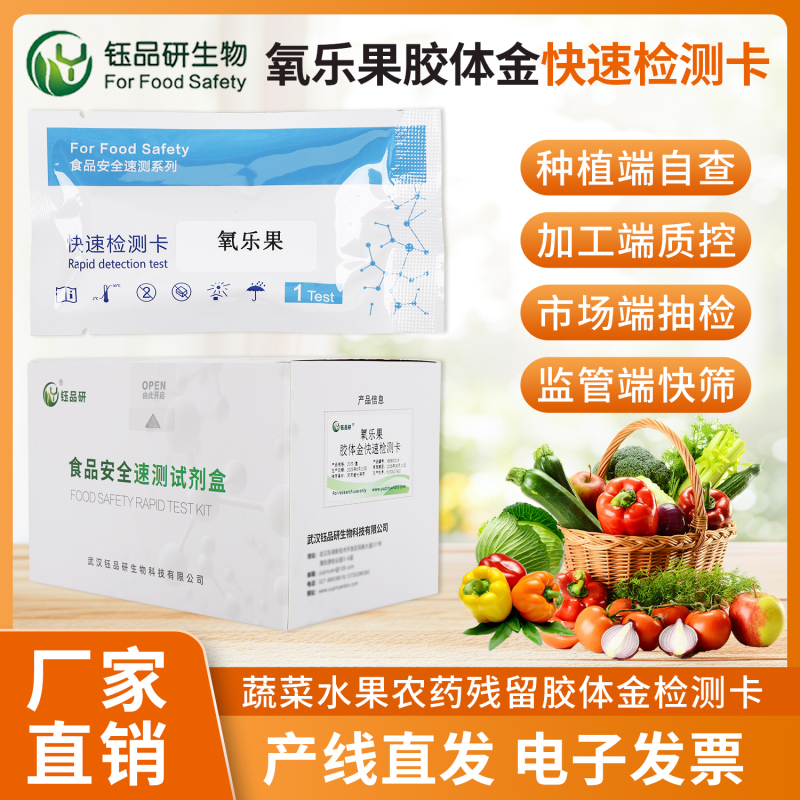 乙基多杀菌素作为一种高效生物源杀虫剂,广泛应用于果蔬种植领域以保障作物产量,但过量残留可能对食品安全构成威胁。建立科学、快速的检测方法,对确保农产品质量安全至关重要。武汉钰品研生物深耕食品安全快速检测领域多年,依托胶体金免疫层析技术研发出针对乙基多杀菌素的快速检测试剂、试纸及胶体金检测卡,为农残检测工作提供了便捷高效的解决方案。