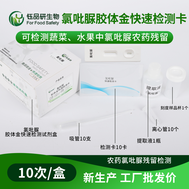 武汉钰品研生物专注于食品安全快速检测技术研发,其生产的氯吡脲胶体金快检卡采用高特异性抗体与优化反应体系,确保检测结果精准可靠。产品兼容黄瓜、葡萄、西瓜等多种温室果蔬基质,降低因样本差异导致的误差,同时配套完整的操作说明书与质控标准,即使是新手也能快速上手。无论是种植基地的日常质量把控,还是监管部门的流动抽检,都能为用户提供高效的检测支持,助力从源头到餐桌的安全管控链条。