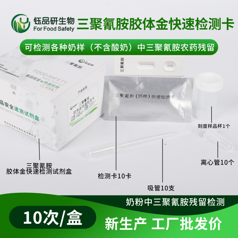 武汉钰品研生物专注于食品安全快速检测试剂、试纸、胶体金检测卡等产品的研发与生产,其研发的三聚氰胺胶体金检测卡,在满足检测准确性的同时,进一步优化了成本控制。相较于传统检测方法,该产品无需昂贵的仪器设备,检测过程中试剂用量少且稳定性高,能够显著降低耗材支出;同时,检测步骤简化,可实现现场快速检测,减少企业因送检或等待检测结果产生的间接成本。对于食品企业而言,选择此类高效检测工具,既能确保每批次产品的安全合规,又能通过降低单次检测成本、缩短检测周期,实现整体运营成本的有效控制。