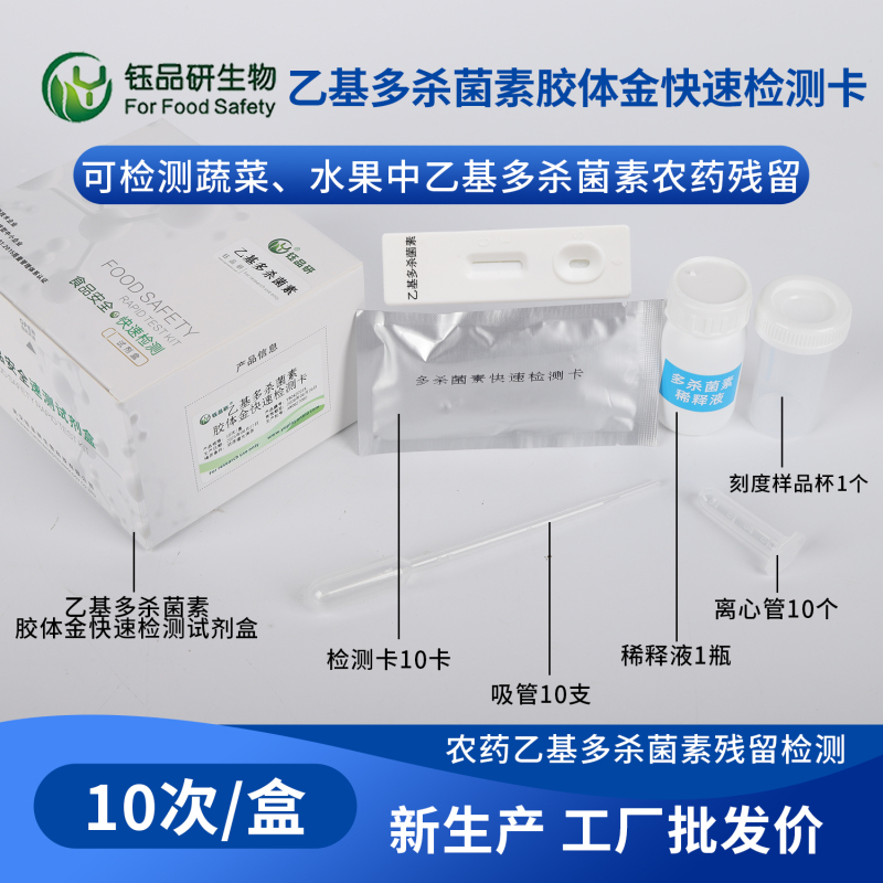 了解乙基多杀菌素的农残特性,离不开对其检测方法的认知。食品安全检测是保障农产品质量安全的关键环节,准确快速的检测技术能及时发现农残问题,为后续处理提供依据。武汉钰品研生物专注于食品安全快速检测领域,研发生产的快速检测试剂、试纸、胶体金检测卡等产品,可针对包括乙基多杀菌素在内的多种农残物质进行快速筛查,操作简便、检测时间短,能有效满足田间地头或实验室的检测需求,帮助相关部门和企业及时掌握农产品农残状况,确保食品安全防线。