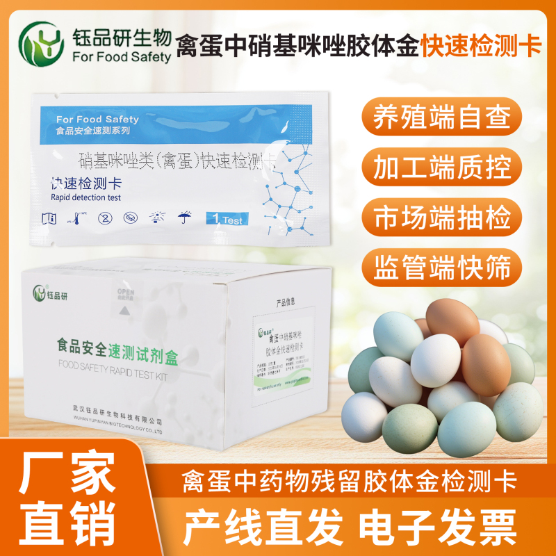 在此背景下,快速、精准的食品安全检测试剂成为蛋企规避风险的关键。武汉钰品研生物深耕食品安全检测领域多年,专注研发蛋品等食品的快速检测试剂、试纸及胶体金检测卡等产品。其产品凭借操作简便、检测周期短(通常30分钟内即可出结果)、灵敏度高的特点,能帮助蛋企在生产各环节及时筛查硝基咪唑残留,将潜在风险消除在萌芽阶段。无论是养殖场自检、加工厂品控,还是流通环节抽检,这类检测产品都能为蛋企提供可靠的数据支持,确保每一批次蛋品的安全合规。