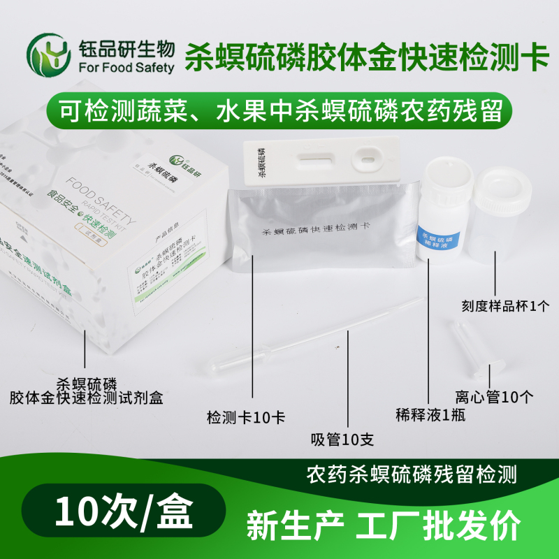 准确检测叶菜中杀螟硫磷的残留分布,对农产品质量安全监管具有重要意义。武汉钰品研生物专注于食品安全快速检测领域,研发的快速检测试剂、试纸及胶体金检测卡,可针对叶菜中的农药残留实现快速筛查与定量分析。通过这些专业检测工具,能够高效识别杀螟硫磷在菜叶与菜根中的残留差异,为农户、企业及监管部门提供及时的质量反馈,助力建立更严格的农产品安全管控体系,保障消费者食用安全。