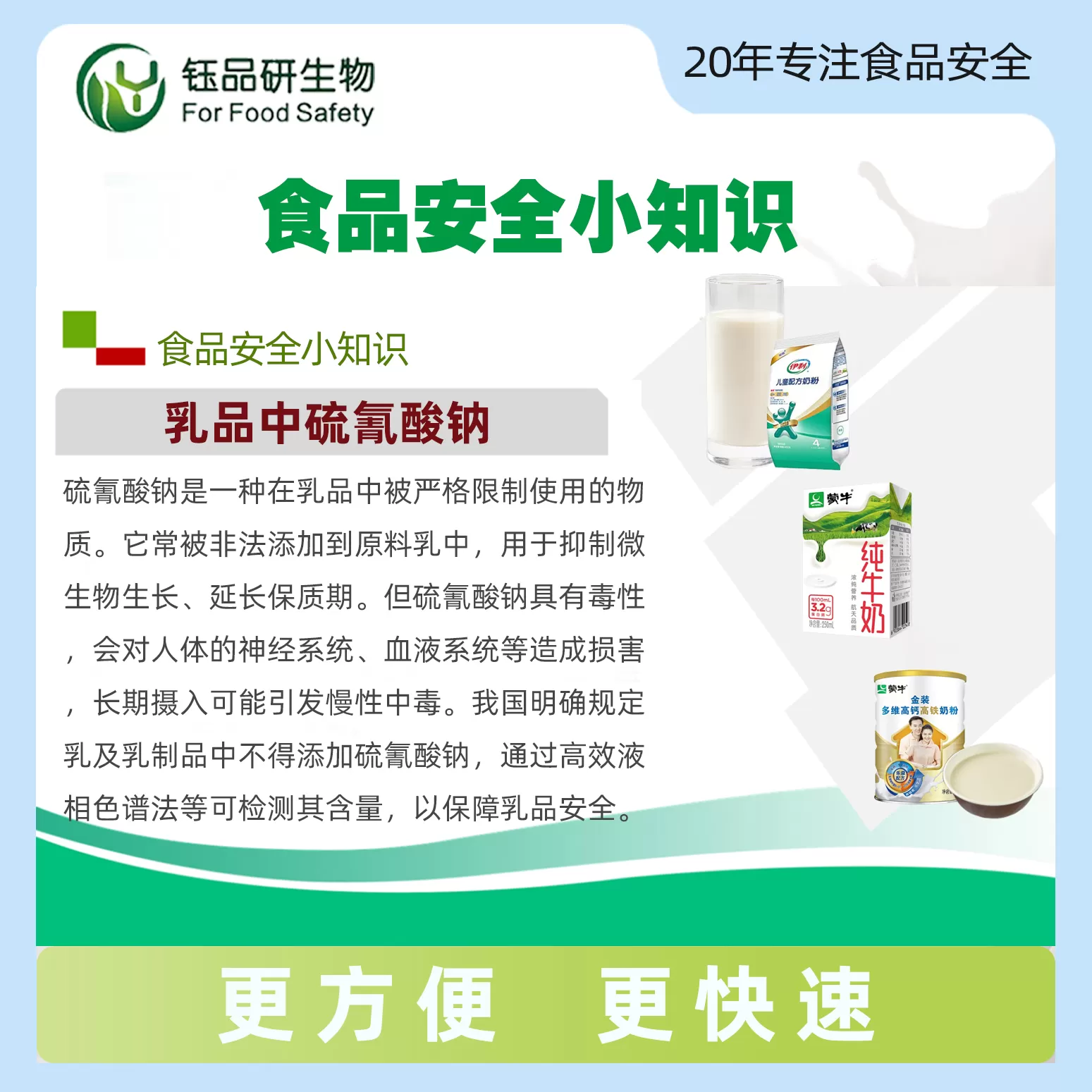 硫氰酸钠常用于化学、轻纺、电镀行业中,在空气中易潮解,有毒,人吸入会出现慢性甲状腺损伤。不少不良商贩将硫氰酸钠用作抑霉防腐剂,与过氧化氢一起用于牛奶保鲜。国家卫生计生委发布的《食品中可能违法添加的非食用物质名单》含有硫氰酸钠。