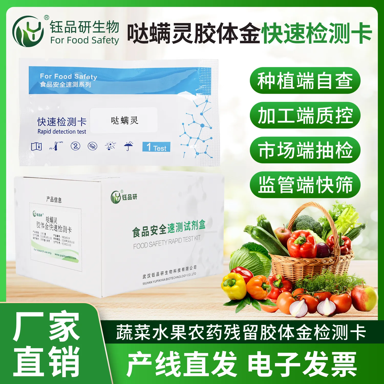 哒螨灵胶体金快检卡,运用竞争抑制免疫层析技术。检测微孔预冻干金标抗体,硝酸纤维素膜 T 线包被哒螨灵抗原,C 线包被羊抗鼠 IgG 二抗。样本中的哒螨灵与金标抗体结合,抑制其与 T 线抗原结合,10 分钟内借 T 线颜色判断残留。操作简单,处理蔬果样本后滴加试剂即可,无需专业设备。哒螨灵作为常用杀螨剂,若使用不当致残留超标,会对人体健康产生潜在威胁。适用于种植、加工企业自检及监管抽检。咨询 13720286360,武汉钰品研生物。...