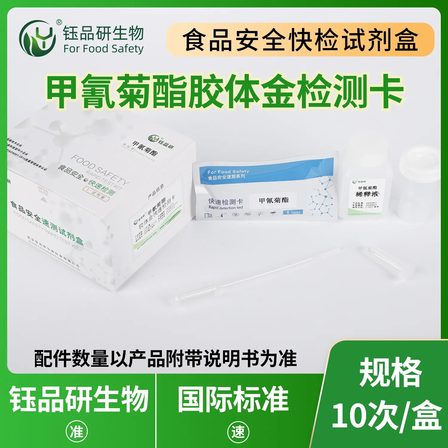 武汉钰品研生物作为专业厂家,推出甲氰菊酯胶体金快速检测卡,是可靠的食品安全检测快检试剂。该检测卡基于竞争抑制免疫层析原理,胶体金标记的特异性抗体与样本中甲氰菊酯竞争结合,通过检测线显色判断结果。操作简便,无需复杂设备,10-15 分钟出结果,精准检测相关样本中该农药残留。适用于农产品检测、监管抽检等场景,咨询热线 13720286360,为食品安全检测提供有力支持。...