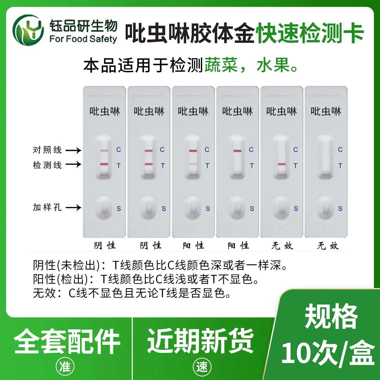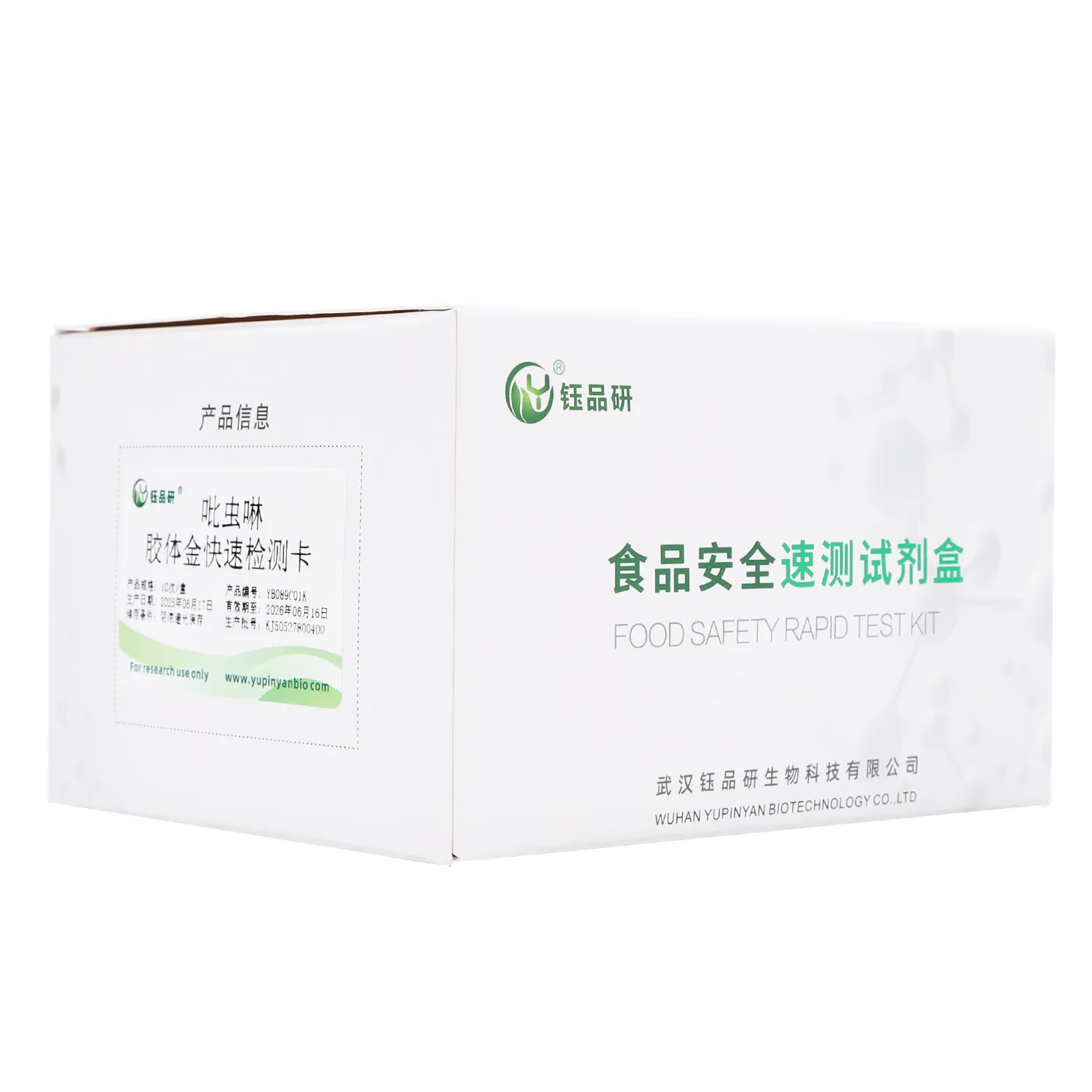 武汉钰品研生物吡虫啉胶体金快检卡,基于竞争抑制免疫层析技术。检测微孔预冻干金标抗体,硝酸纤维素膜检测线(T 线)包被吡虫啉抗原,对照线(C 线)包被羊抗鼠 IgG 二抗。样本中吡虫啉与金标抗体结合,抑制其与 T 线抗原结合,10 分钟内借 T 线颜色判断残留。操作简便,按说明处理蔬果样本后滴加试剂即可,无需专业设备。吡虫啉作为烟碱类杀虫剂,虽高效低毒,但残留超标仍可能刺激皮肤、黏膜,引发胃肠道不适,长期接触或影响神经系统。适用于种植、加工企业自检及监管抽检。咨询 13720286360,守护食品安全。...