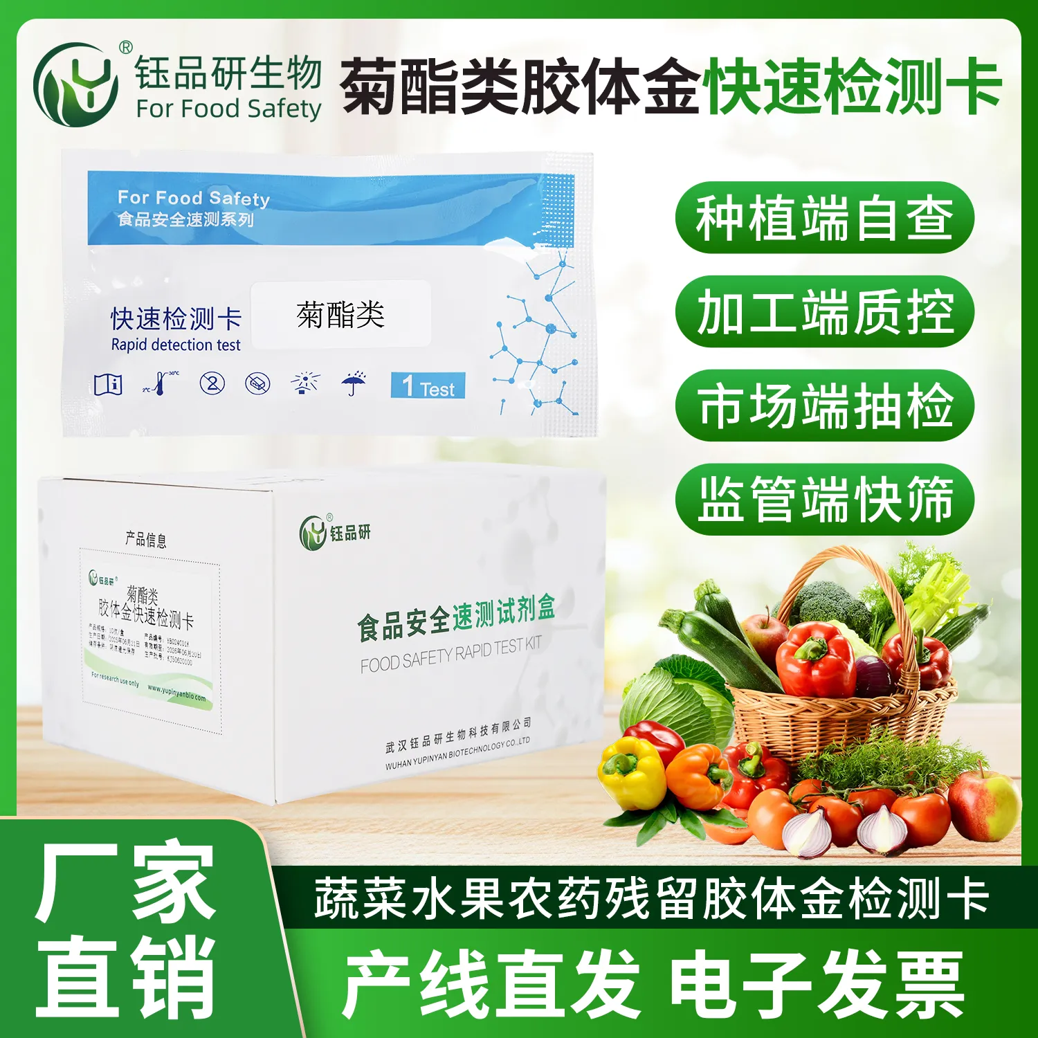 菊酯类胶体金快检卡,基于竞争抑制免疫层析技术。检测微孔预冻干金标抗体,硝酸纤维素膜 T 线包被菊酯类抗原,C 线包被羊抗鼠 IgG 二抗。样本中菊酯类与金标抗体结合,抑制其与 T 线抗原结合,10 分钟内借 T 线颜色判断残留。操作简便,按说明处理蔬果、肉类等样本后滴加试剂即可,无需专业设备。菊酯类残留超标,会刺激皮肤、黏膜,影响神经,危害健康。适用于种植、加工企业自检及监管抽检。咨询 13720286360,武汉钰品研生物。...