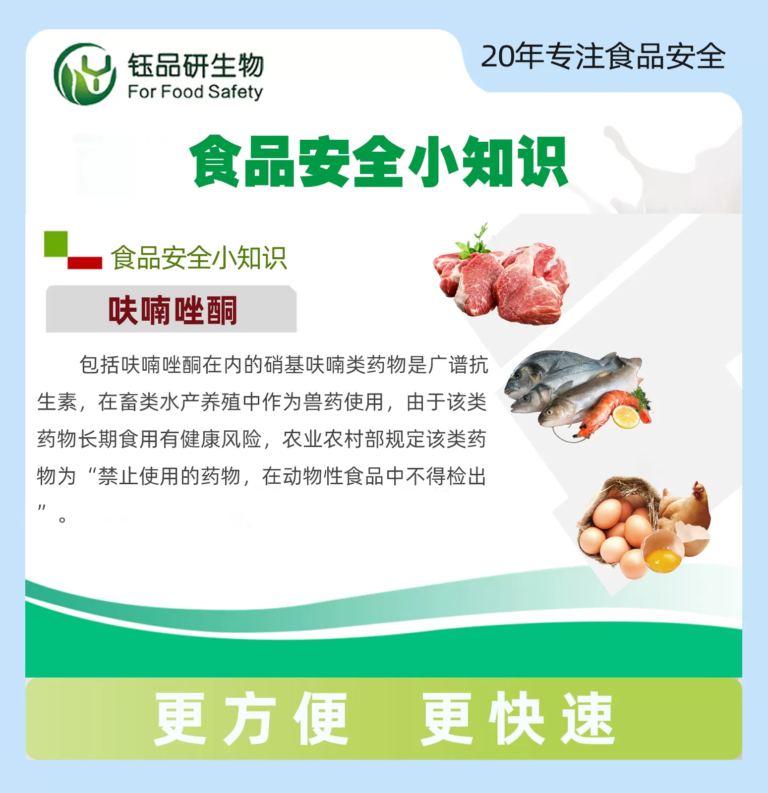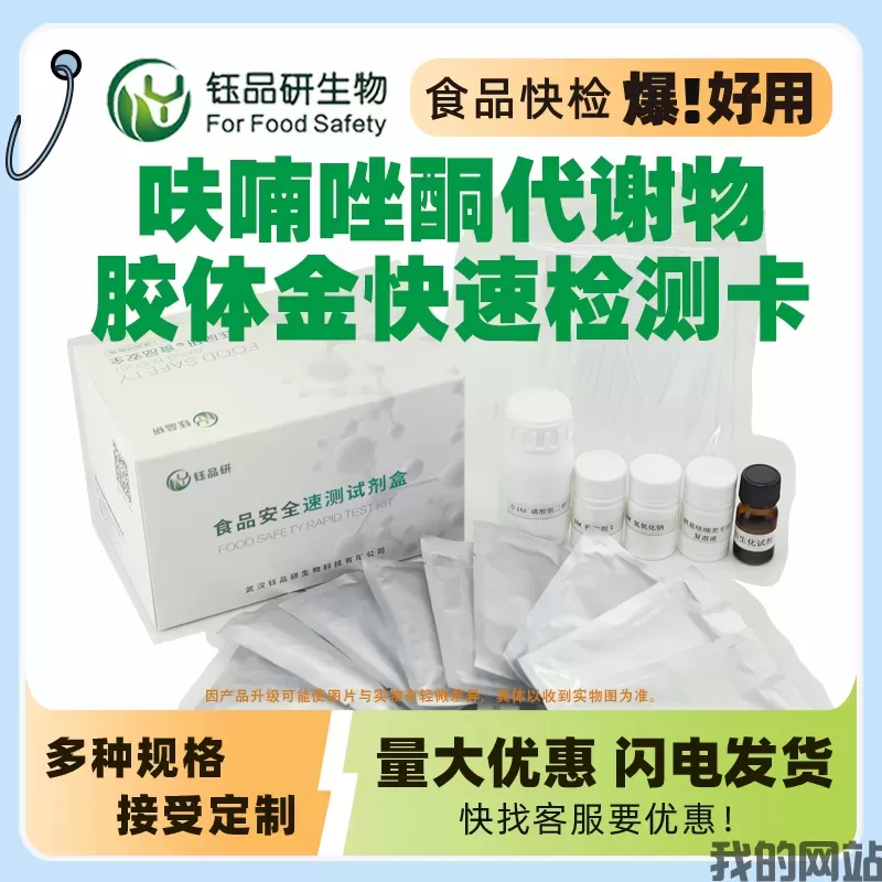 本产品应用竞争抑制胶体金免疫层析的原理制成,用于检测组织样本(鸡、鸭、鱼、虾肉)中呋喃唑酮代谢物残留。整个检测过程需要2个小时,适用于各类企业及检测机构。