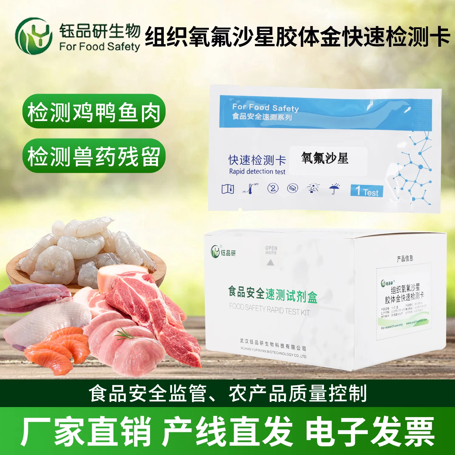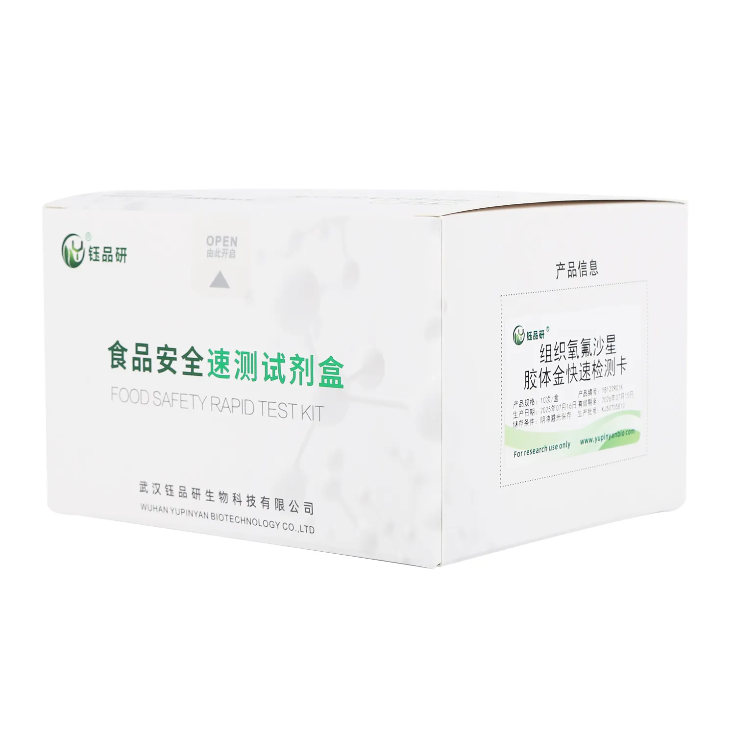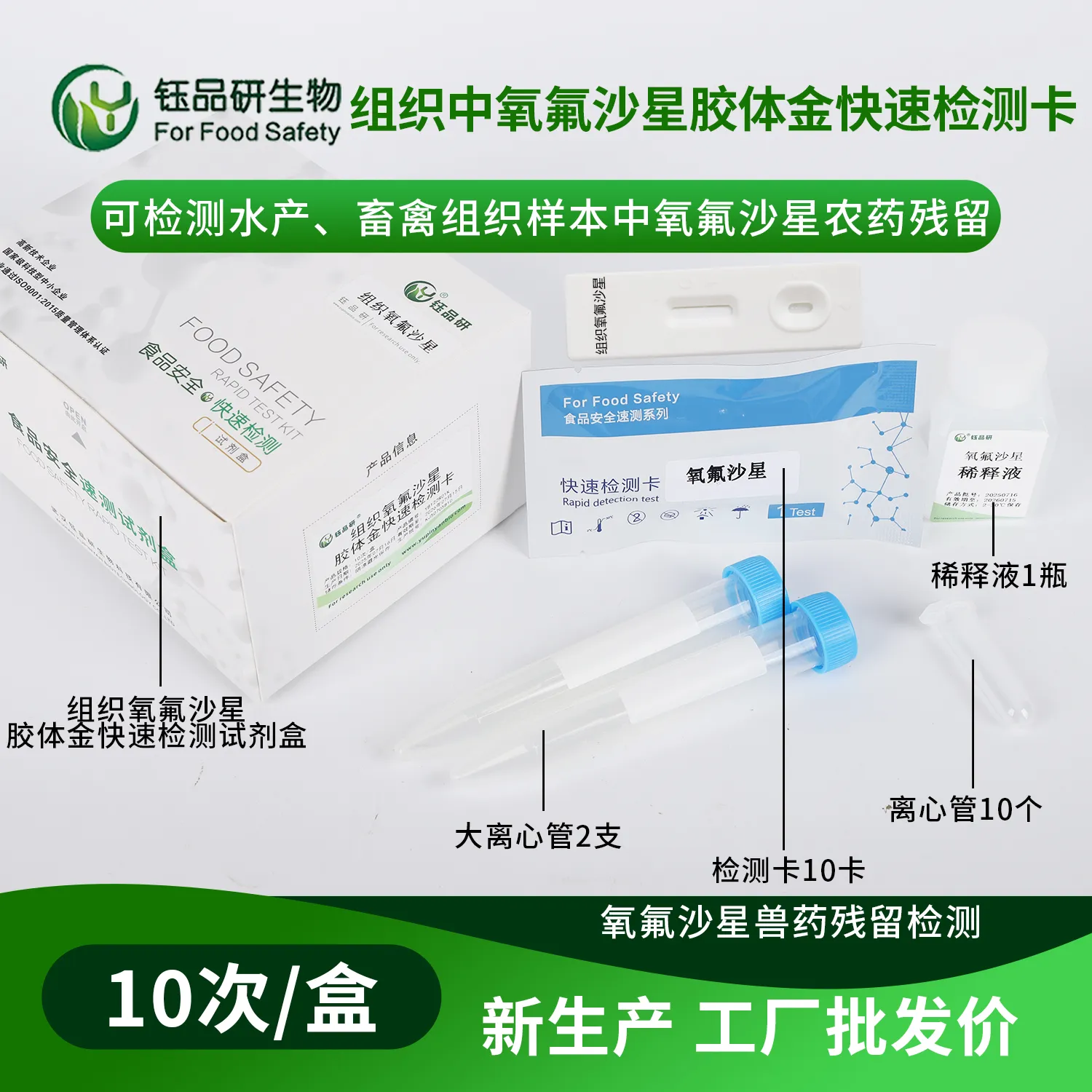 氧氟沙星胶体金快检卡,基于竞争抑制免疫层析原理。检测微孔预冻干金标氧氟沙星抗体,硝酸纤维素膜 T 线包被氧氟沙星抗原,C 线包被羊抗鼠 IgG 二抗。简单处理水产、畜禽肉、禽蛋等样本后滴加试剂,样本中氧氟沙星与金标抗体结合,抑制其与 T 线抗原结合,10 分钟内借 T 线颜色判断残留。氧氟沙星作为广谱抗菌药,滥用致残留超标,会引发人体过敏、肝肾损伤、胃肠不适等。适用于养殖、加工企业自检及监管部门抽检。咨询 13720286360,武汉钰品研生物。...