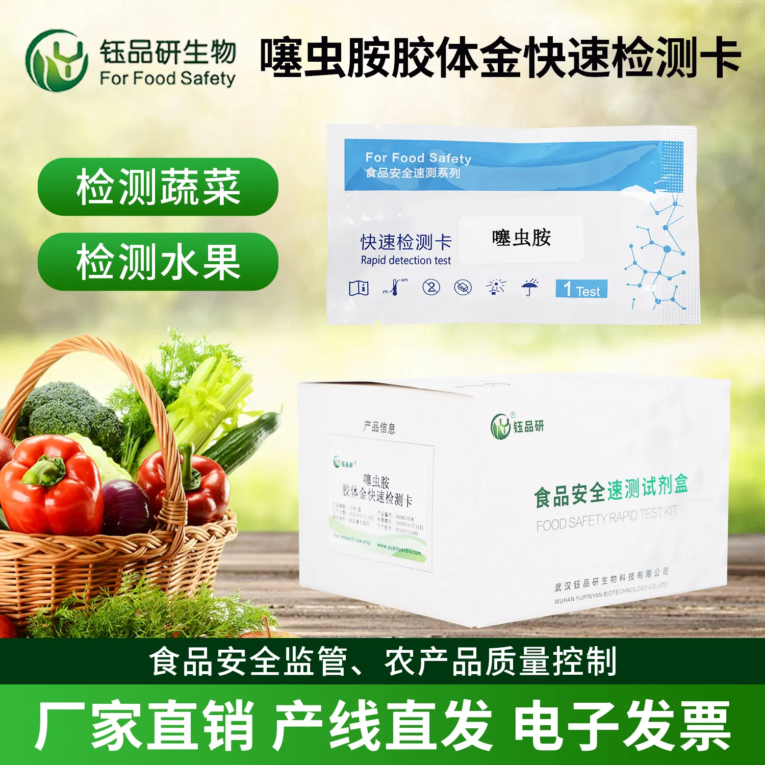 武汉钰品研生物,专业食品安全检测试剂厂家,供应噻虫胺胶体金快速检测卡!操作简便、快速出结果,精准检测噻虫胺残留,助力食品企业、检测机构高效把控安全,品质可靠,欢迎咨询!...