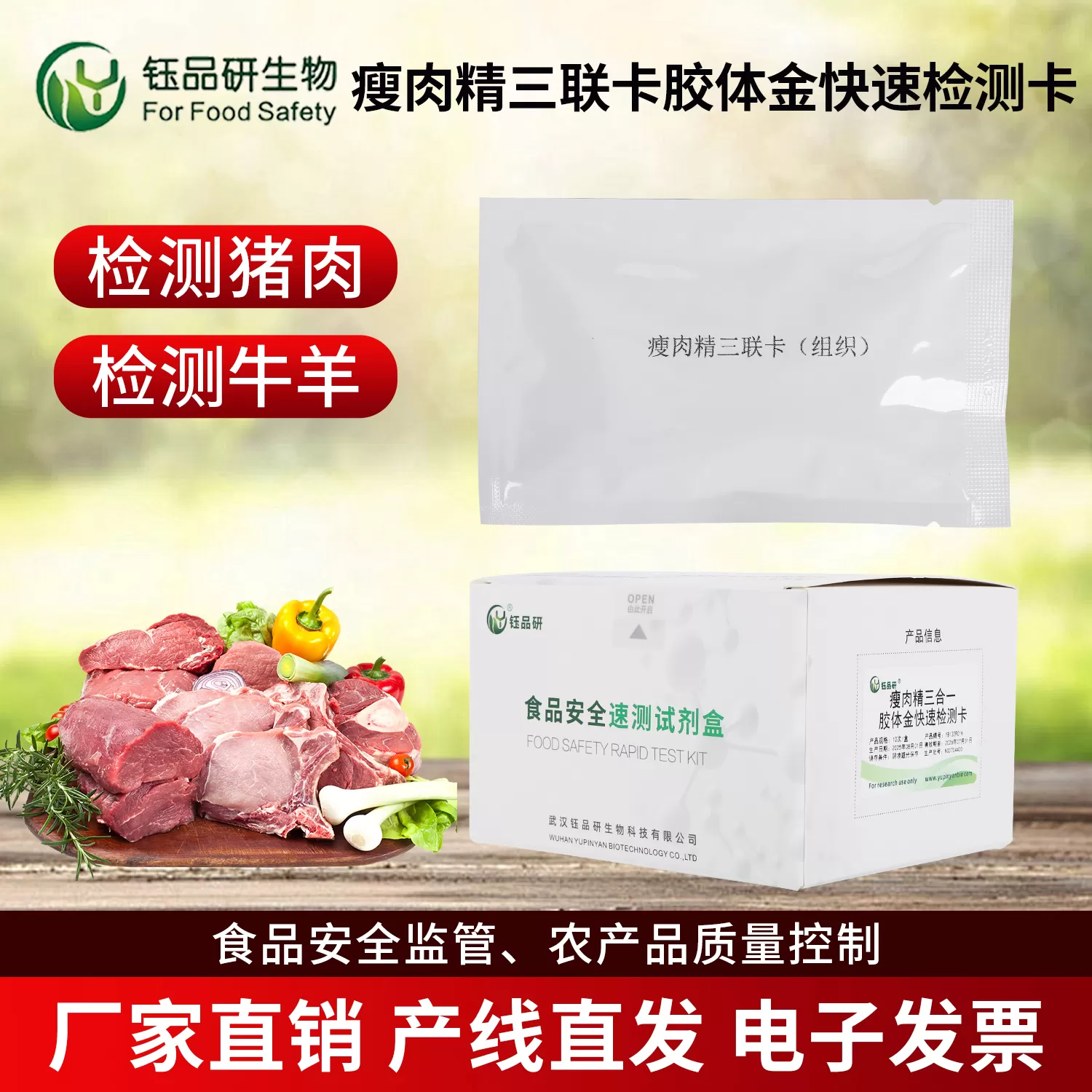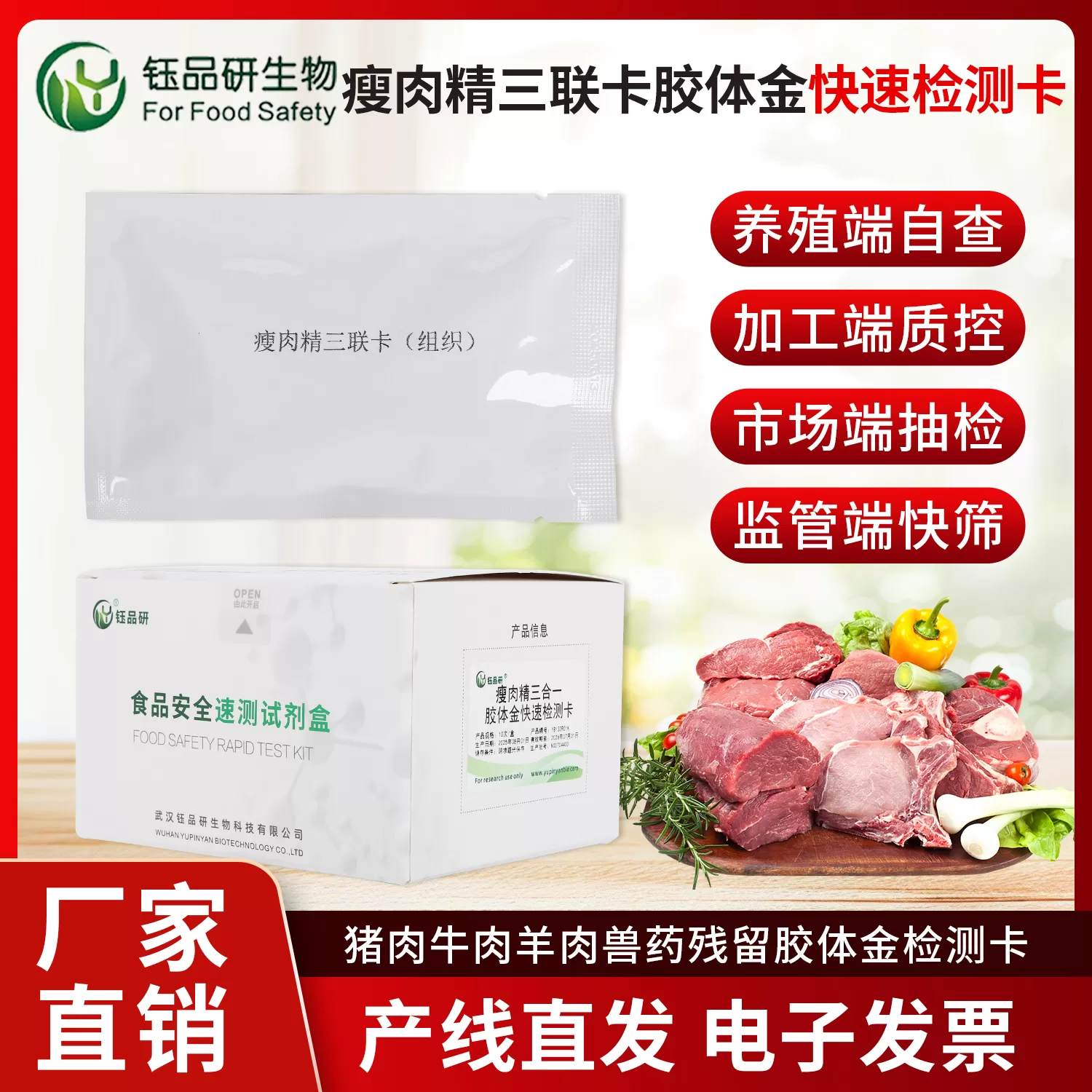 武汉钰品研生物(专业食品安全检测试剂厂家)推出瘦肉精三合一胶体金快速检测卡,可同步精准检测瘦肉精类(如克伦特罗、沙丁胺醇、莱克多巴胺)残留,操作简便、结果快速,适配肉类加工企业、监管机构、检测实验室等场景,助力食品安全高效管控。...